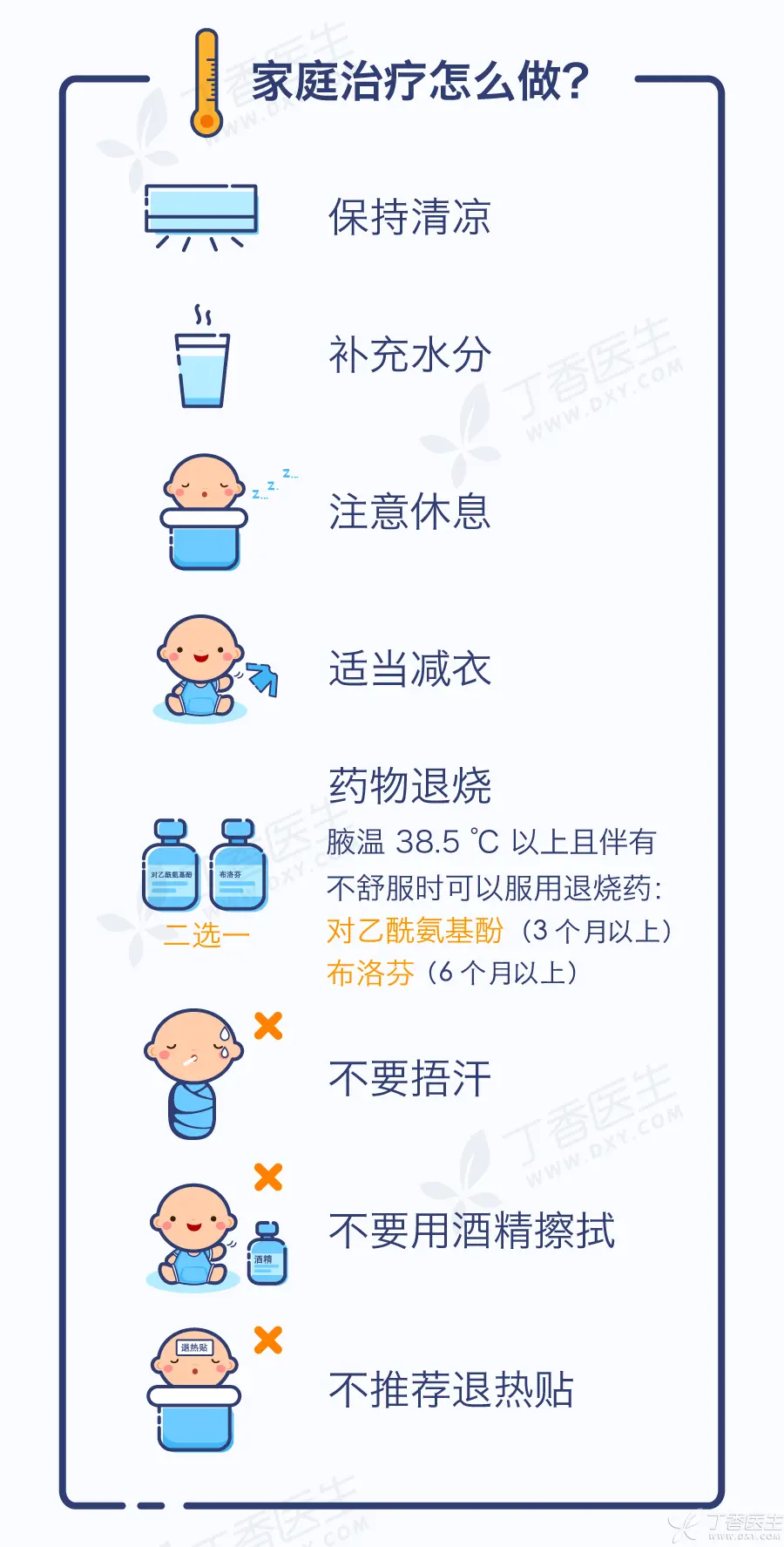 0~3 月龄发热的孩子,有较高的菌血症或脑膜炎的风险,不适合在家自行处理和观察,应当及时就诊,医生来判断情况。